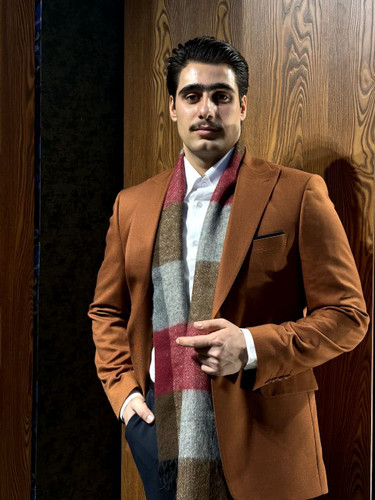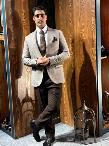 کت و شلوار کرم و قهوه ای مردانه سه تیکه